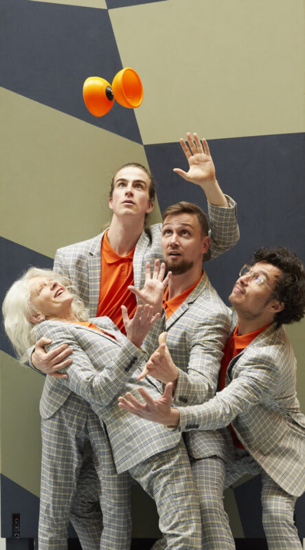 De voorstelling wordt gespeeld door drie generaties circusartiesten, samen met livemuziek! Knock knock who’s there gaat over doorgeven: als een estafette, als een cascade. In het jongleren, maar ook in hoe je elkaar ondersteunt, hoe je samen ademt, focust en ruimte maakt. Want hoe doen we dat eigenlijk, samen zijn en iets aan elkaar doorgeven?