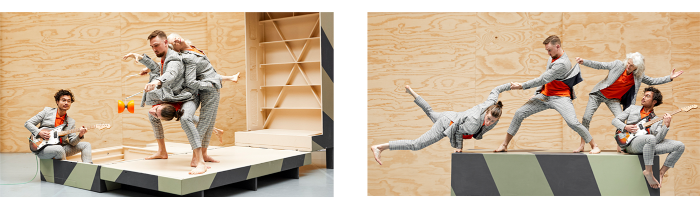 “De dansers achtervolgen elkaar en spelen met gewichtloosheid. Een van hen jongleert subtiel met een diabolo als metafoor van elegantie en souplesse.”